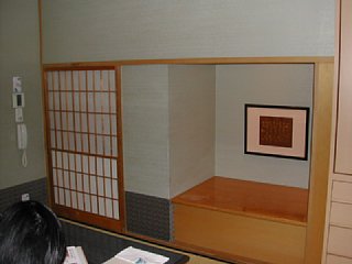 | 通されたのは小さな床の間のある個室。一緒に行った友達のひとりが「内緒話もできるわね」なんて冗談を言うと、案内してくれた方も「どうぞどうぞ、思い切り内緒話してください」と返してくださり、和やかなムードでした。窓の外は庭が見え、少し梅の花がほころんでいました。 |