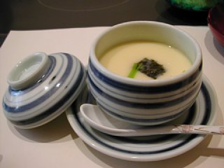 茶碗蒸しです。白玉、銀杏、しいたけ、海苔、エビが入っていました。白玉が入った茶碗蒸しは初めて!プルプルの卵がとってもなめらかでした。 |