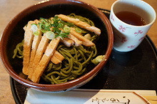 | お昼は、「竹の子」さんで、茶そばを頂きました。 | ぶっかっけたぬき茶そばは、550円です。 |
