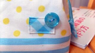表側にはアクセントにブルーのギンガムチェックのタグとブルーのボタンをプラス。
