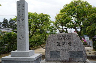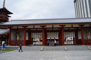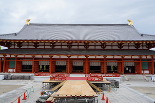 | 世界遺産 薬師寺。唐招提寺のすぐ側です。 | 中門。左に西塔。右が修理中の国宝 東塔。 |