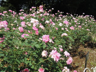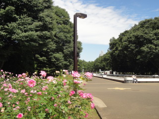 | 途中にはバラ園もありました、少し早い気もしますが、バラが綺麗に咲いていました。 そして大噴水の周りは緑深く、落ち着ける場所です。 |